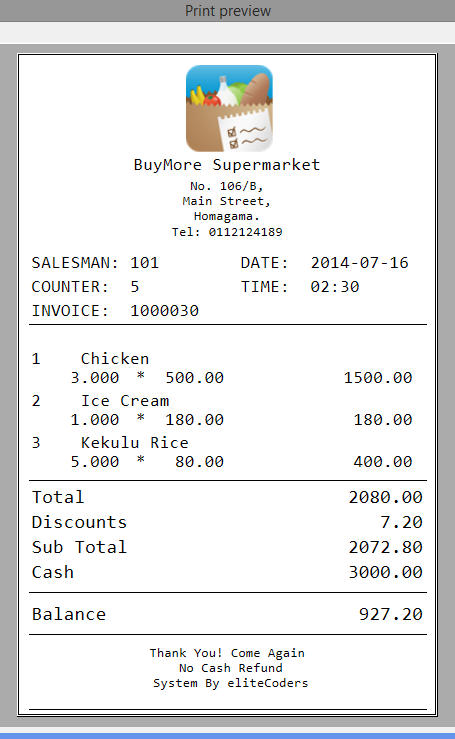 ElitePoS is a standalone, general purpose, customizable PoS application for small business owners. Besides recording transactions, the application tracks inventory items, print informative invoices and receipts, produce report using analyzed transaction processing data and manage entities related to the business.