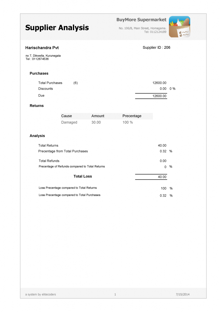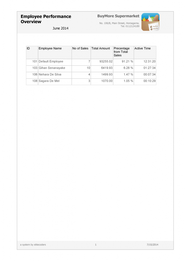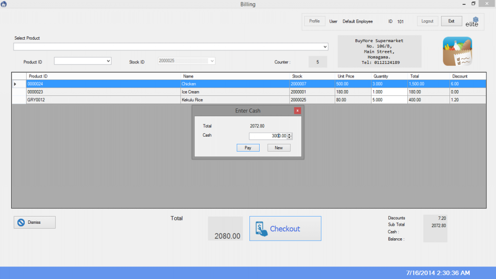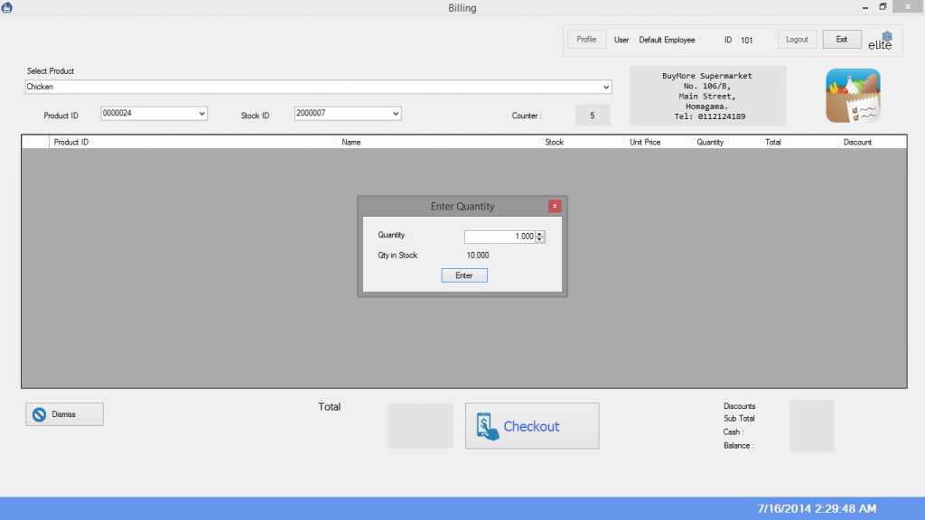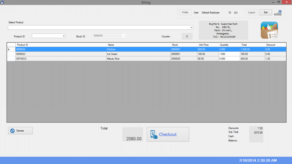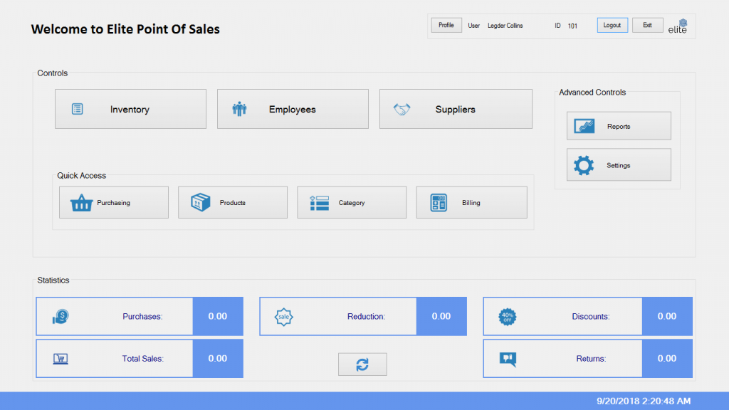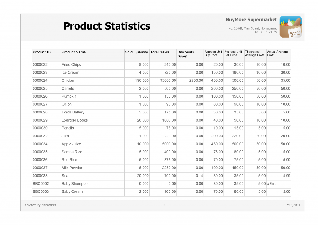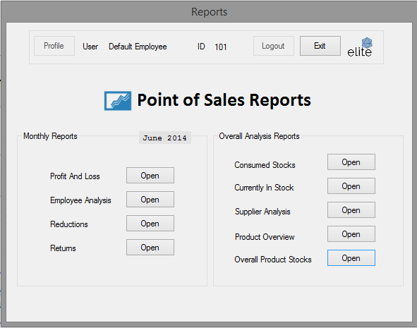 ElitePoS is a general purpose point of sale application that includes functionality of a transaction processing system which provides certain decision support capabilities. Options to customize the product according to the customers’ needs are provided to assert the general-purpose nature. In the interest of enabling small business owners, providing insights and summarized analysis of sales and inventory are further integrated to the system.