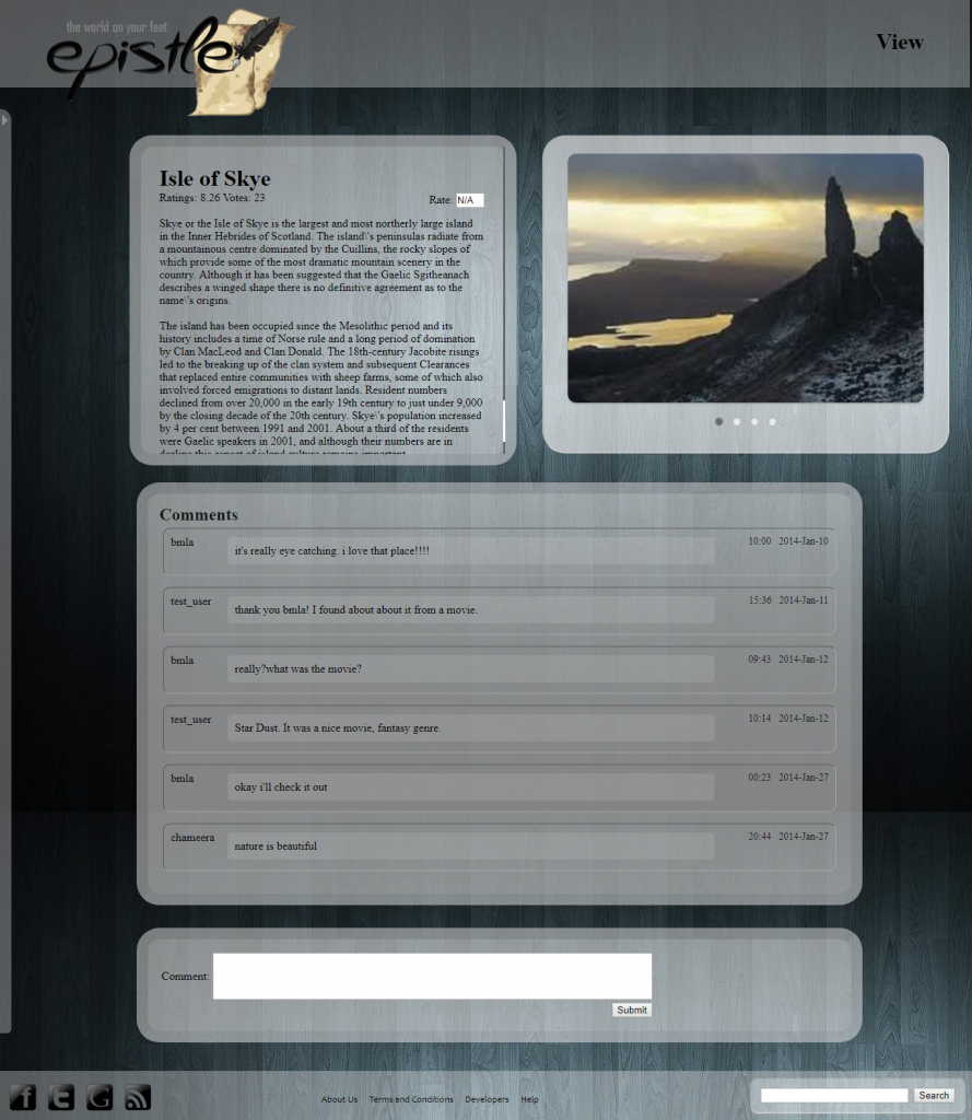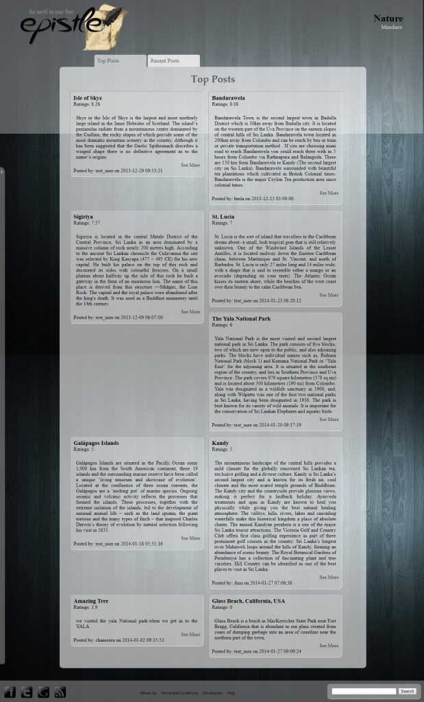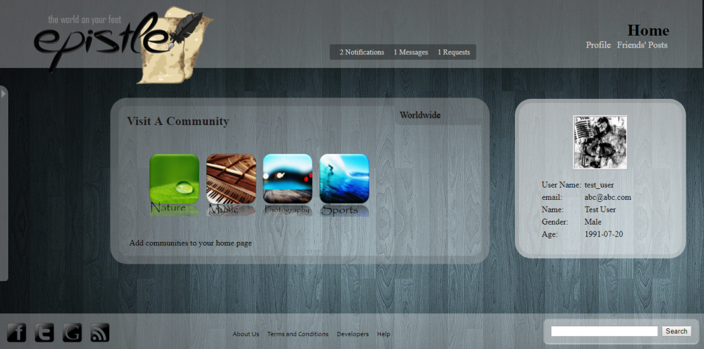Epistle allows users to post their views and articles with up to four pictures to add some color. These posts are displayed in other users’ community pages. Users are allowed to subscribe to any available community which represents general interest. They are also allowed to create new communities.