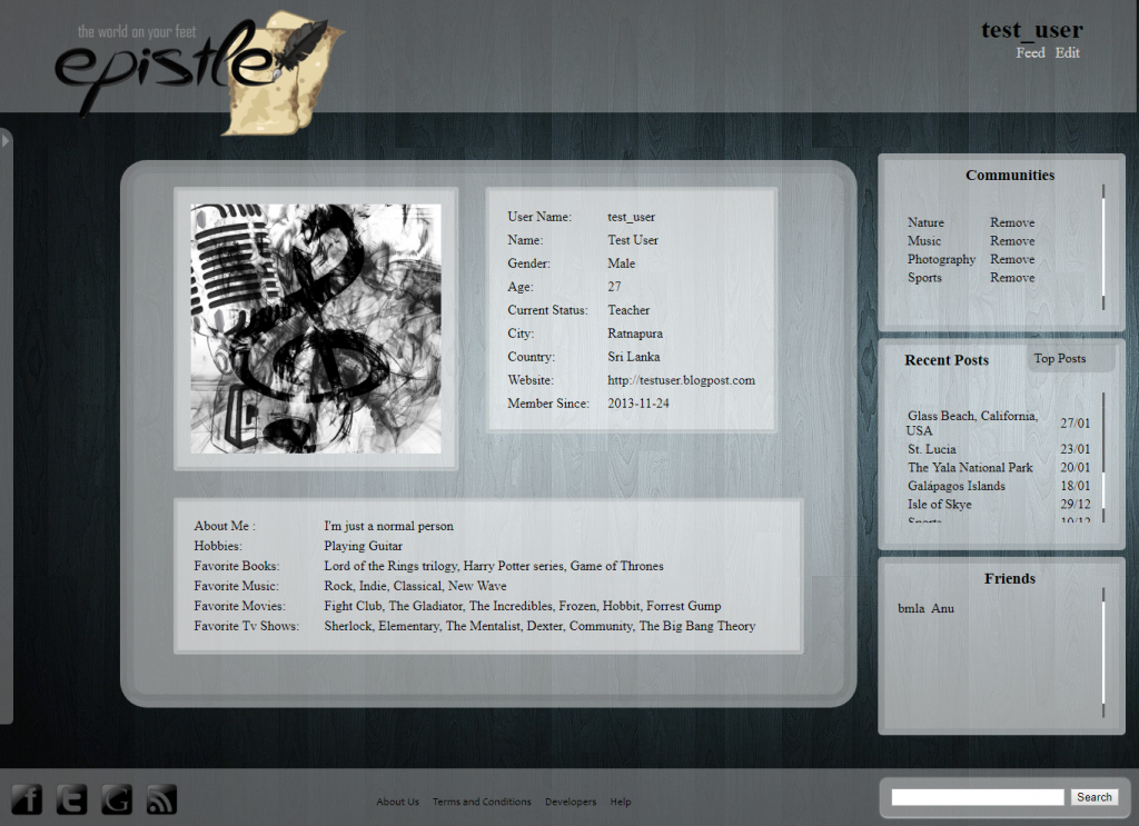 The basic idea of the platform is to let people discuss their passions with a certain degree of anonymity and so the like-minded could connect with each other eventually. While main function of the website was blogging, it was evident that a social networking aspect had to be there for an enhanced and much more meaningful experience. Every user has a profile, and can connect with other uses through mutual agreement. Sending messages and discussing posts in the comment sections are also facilitated.