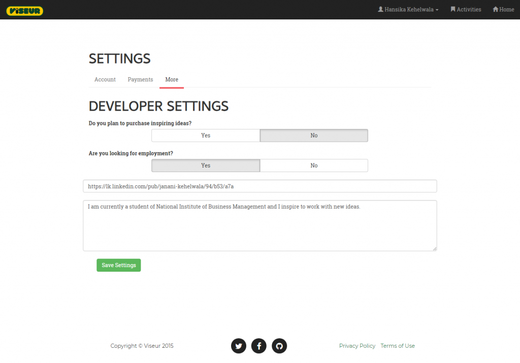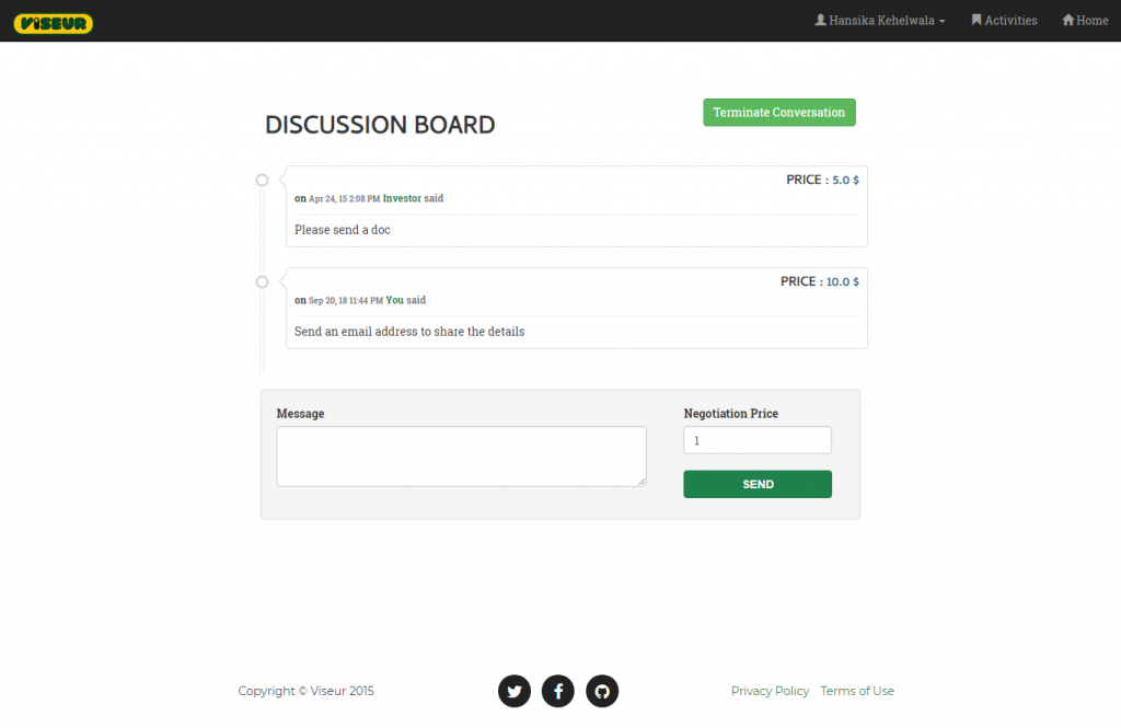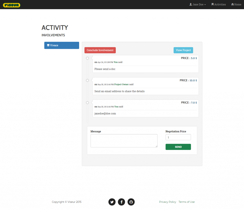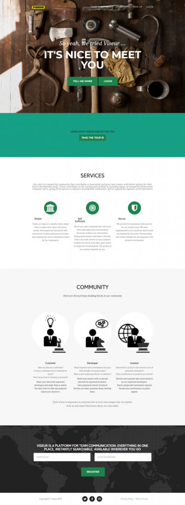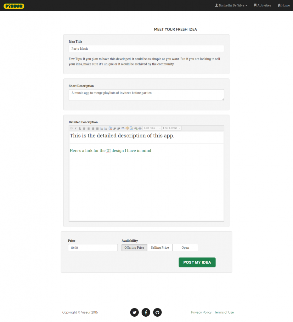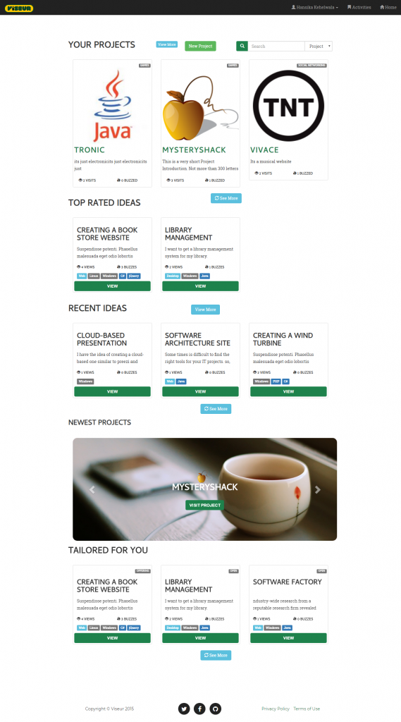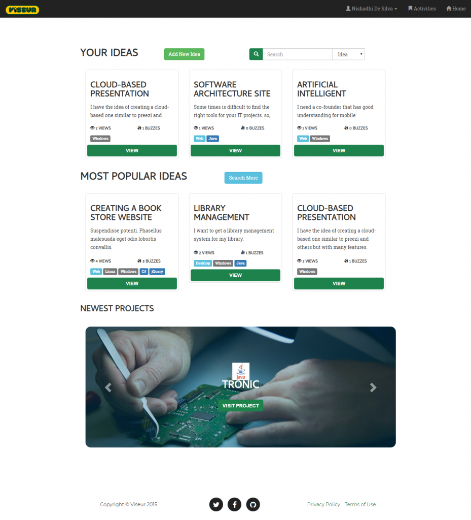 Viseur is an online project funding platform that facilitates the expression of various requirements of users at various level in a software project. The core function of the website would be to allow users with any level of computer literacy to share their ideas and requirements with the community so that an interested party would eventually develop or fund them. Therefore, it enables