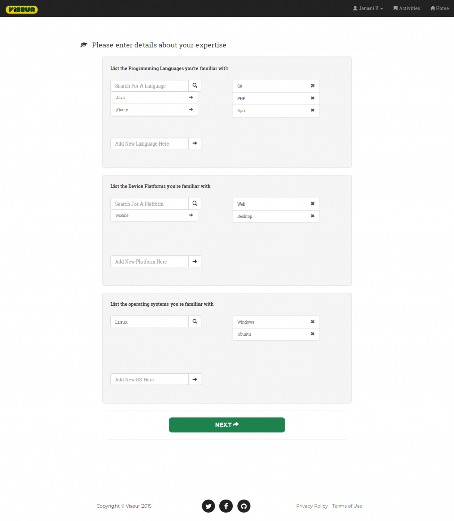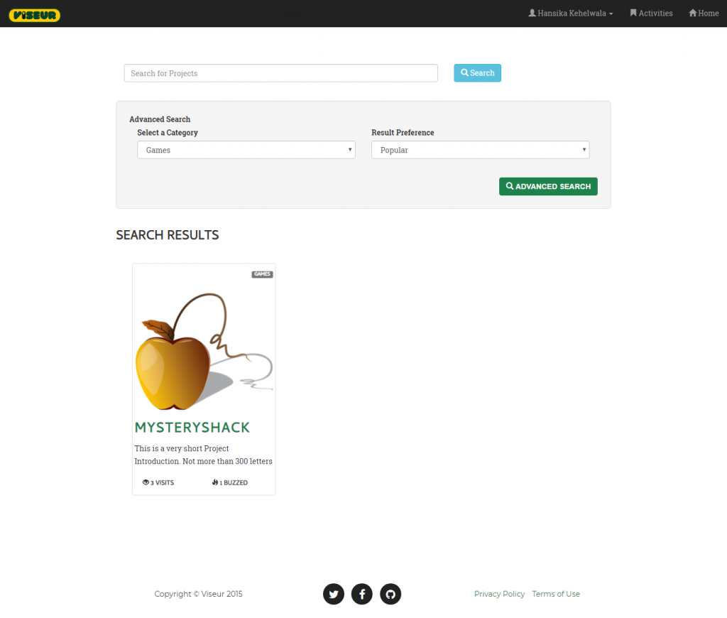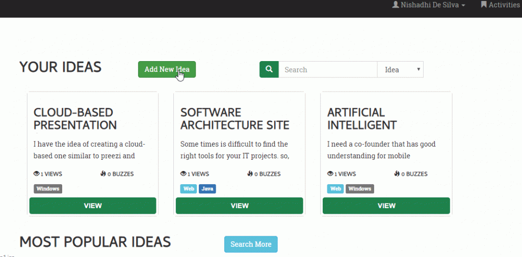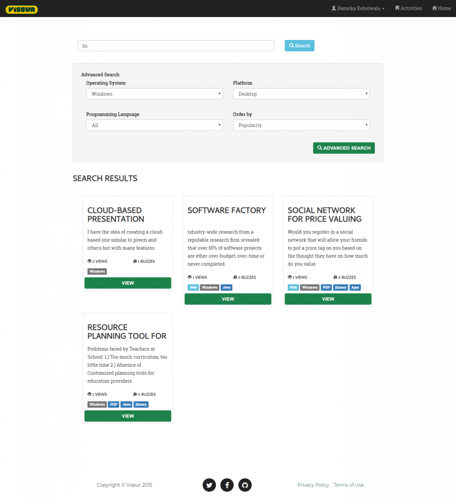 Level one users and level two users are provided the facility of searching ideas. While level two users can search ideas and projects according to the specific operating systems, programming language and the platform required. Level three users are also allowed to search for the proposals according to their interests and view detailed profiles
