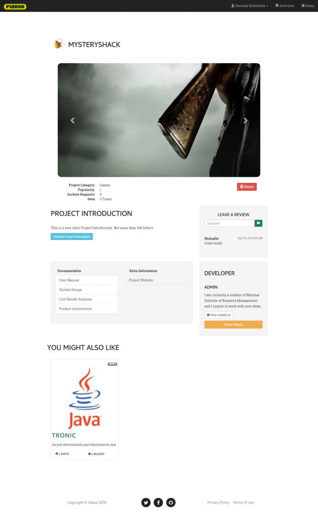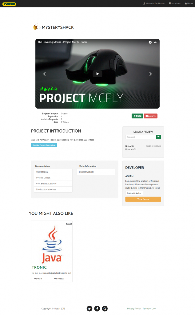 Level one and two users are provided the opportunity of rating the posted ideas and projects belonging to their peers. These ratings and views are displayed in front of every idea or project to give the user a brief idea about the particular project or idea. Users have the opportunity of posting comments on any project or ideas that has been uploaded by other users.