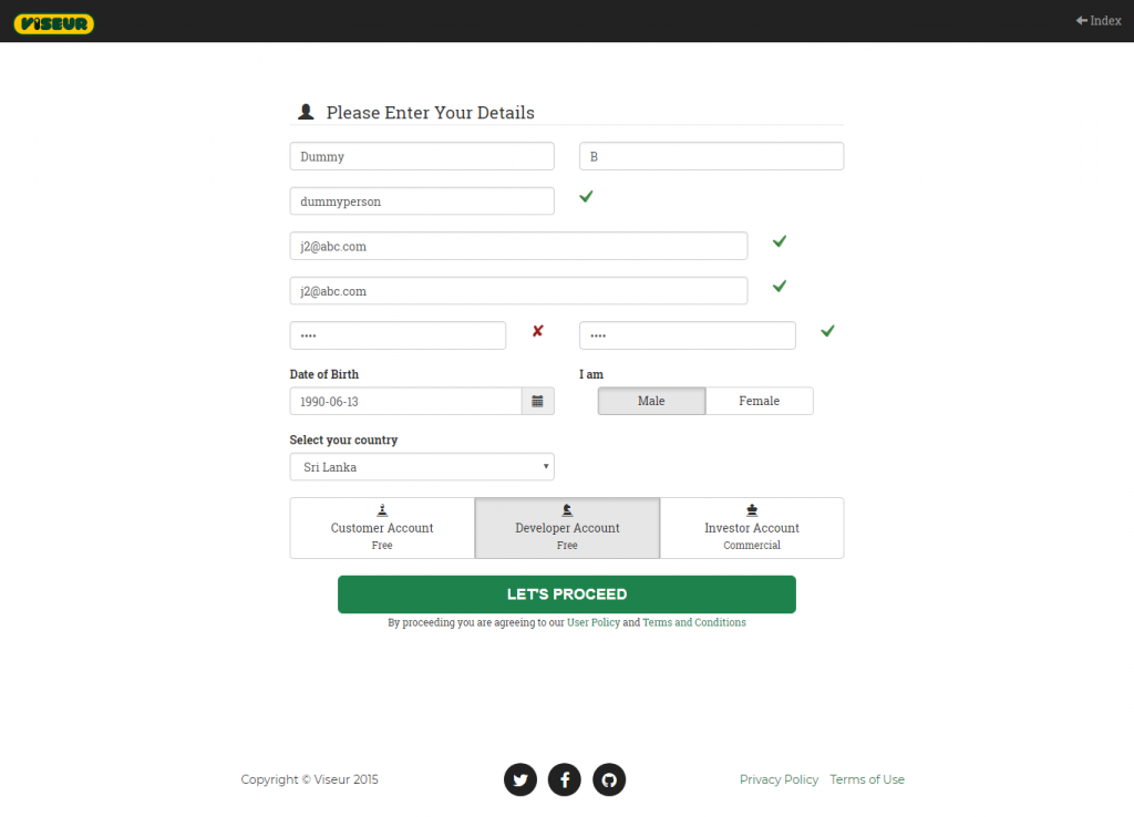Every user have to register in Viseur who are willing to interact within the website. Afterward user have to select the level of user which categorize them under any one level of the above mentioned three types of users. All content of the website would be accessible for view by all the users but the actions they could perform and their interactions with the data model will be limited according to their level. Users will have the option to upgrade their accounts to higher levels over time.